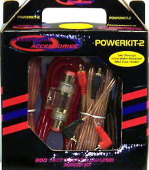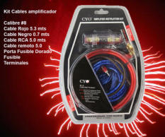 Power Kit 2 Características principales:• Cable RCA con ángulo recto de 518.16 cm• Cable de Poder para alimentación rojo 518.16 cmGAU 8• Cable de Poder para tierra negro 91.44 cm GAU 8• Cable para parlante 457.20 cm GAU 16• Cable para encendido remoto azul 518.16 cm GAU 16• Fusible AGU 60 Amp• Terminal dorada tipo aro GAU 8• Tubo corrugado para organización de cableado NegroGAU 8